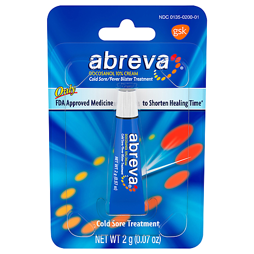 Abreva Docosanol 10% Cream is a cold sore treatment that acts fast to tackle cold sores at their source. Formulated with docosanol 10%, this fever blister and cold sore medication helps to shorten the duration of tingling, pain, burning and itching associated with cold sores if used as directed at the first sign of a tingle. Unlike other cold sore remedies that just soothe symptoms, Abreva Cold Sore Treatment penetrates deep to create a barrier around healthy skin cells to prevent the spread of herpes simplex virus type 1 (HSV-1). Abreva Cream is the only nonprescription cold sore medicine approved by the FDA to shorten healing time to heal cold sores in as few as 2 1/2 days (1). This healing cream should be applied 5 times a day until your cold sore is fully healed, for a maximum of 10 days. This Abreva Docosanol 10% Cream tube is easy to apply and take on the go.(1) When used at the first sign