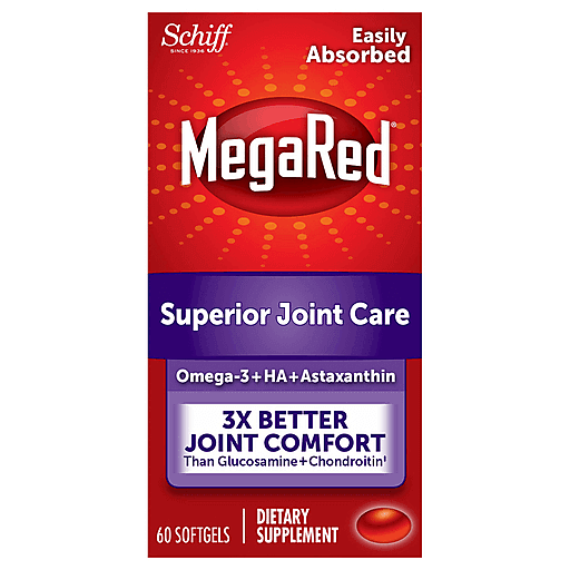 MegaRed Superior Joint Care Omega-3 Krill Oil has a unique proprietary formula that combines powerful Omega-3 krill oil with hyaluronic acid, a substance that exists naturally in your body and helps lubricate and cushion your joints, and the powerful antioxidant astaxanthin to help support the overall health of you joints.٭